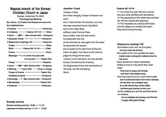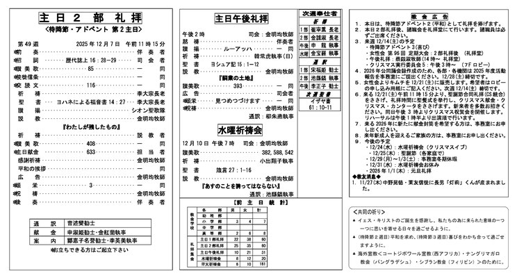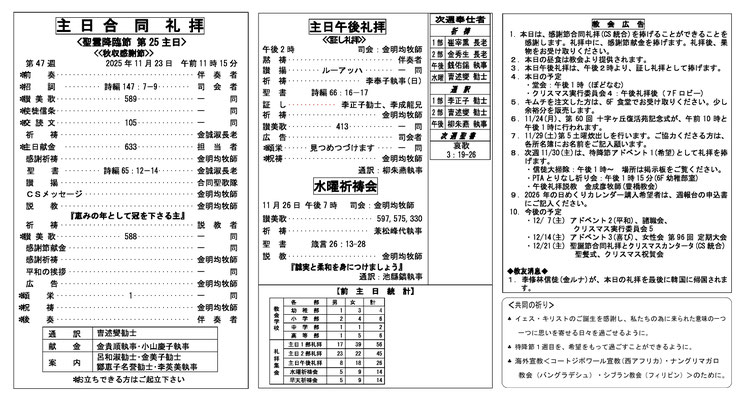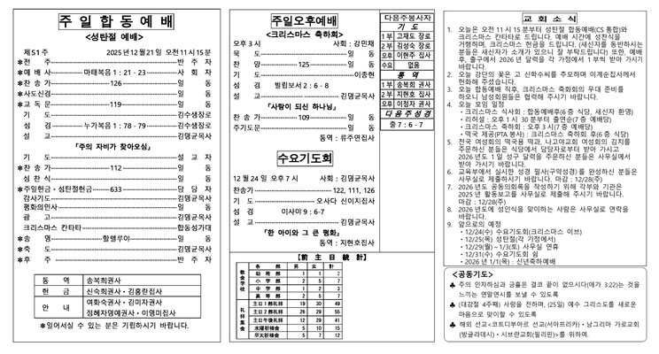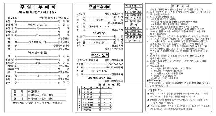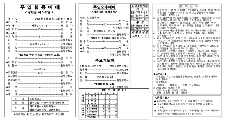 과거의 예배는 상단의 「주보 · 예배 동영상」에서 보실 수 있습니다.
