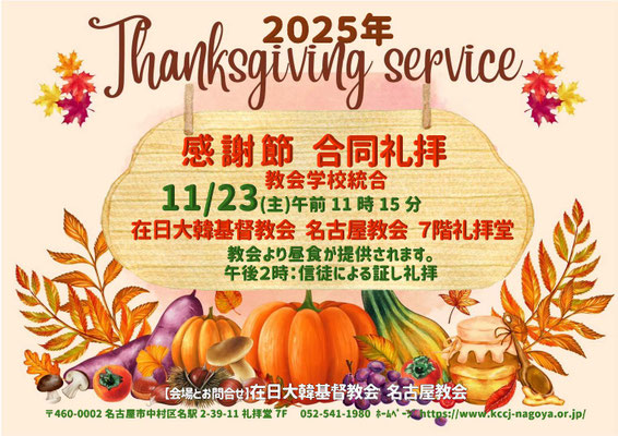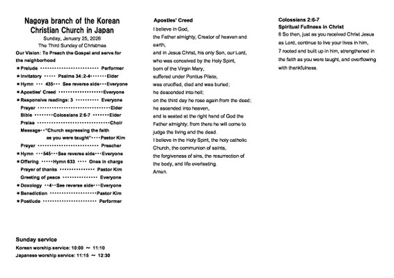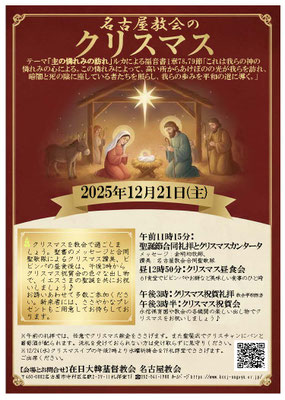 現在、名古屋教会では主日1・2部礼拝、水曜祈祷会、早天祈祷会、教会学校の対面礼拝を行っております。