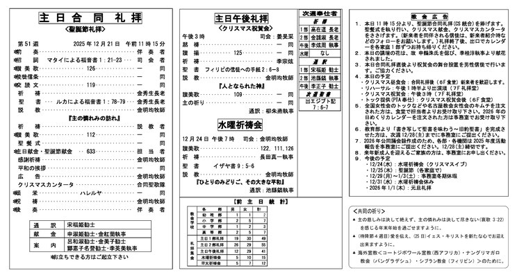 過去の礼拝は、上部の「週報・礼拝動画」よりご覧いただけます。
