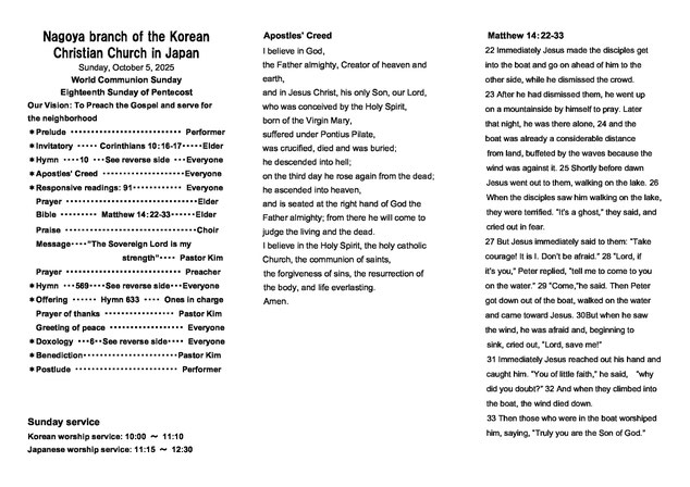 週報・礼拝動画/주보·예배 동영상 · 2025/10/12 【礼拝動画】2025年10月12日主日 礼拝メッセージ 재일대한기독교회 나고야교회 2025년10월12일 한국어예배 クッキーの設定によりYoutubeのコンテンツが表示されません。Youtubeのコンテンツの読み込みと表示を行う場合は、クッキーバナーよりYoutubeのクッキーを受け入れてください。 성경: 요호수아8:30-35 제목:『목숨을 걸고 지켜야 할 것』 설교:김명균목사 在日大韓基督教会 名古屋教会2025年 10月12日2部礼拝 クッキーの設定によりYoutubeのコンテンツが表示されません。Youtubeのコンテンツの読み込みと表示を行う場合は、クッキーバナーよりYoutubeのクッキーを受け入れてください。 聖書:ヨシュア記8:30-35 題目:『命をかけて守るべきもの』 説教:金明均牧師 tagPlaceholderカテゴリ: service コメントをお書きください コメント: 0