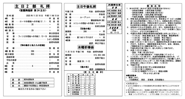 週報・礼拝動画/주보·예배 동영상 · 2025/11/16 【礼拝動画】2025年11月16日主日 礼拝メッセージ 재일대한기독교회 나고야교회 2025년11월16일 한국어예배 クッキーの設定によりYoutubeのコンテンツが表示されません。Youtubeのコンテンツの読み込みと表示を行う場合は、クッキーバナーよりYoutubeのクッキーを受け入れてください。 성경:빌립보서2:12-18 제목:『하나님의 일하심과 우리의 순종』 설교:김명균목사 在日大韓基督教会 名古屋教会2025年 11月16日2部礼拝 クッキーの設定によりYoutubeのコンテンツが表示されません。Youtubeのコンテンツの読み込みと表示を行う場合は、クッキーバナーよりYoutubeのクッキーを受け入れてください。 聖書:フィリピの信徒への手紙2:12-18 題目:『神の働きと私たちの従順』 説教:金明均牧師 tagPlaceholderカテゴリ: service コメントをお書きください コメント: 0