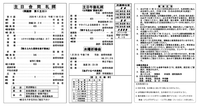 在日大韓基督教会 名古屋教会2026年 1月25日2部礼拝
